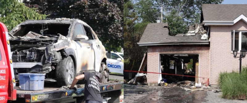 ▲現代Kona EV在加拿大起火炸飛了車庫頂棚,圖源:electrek