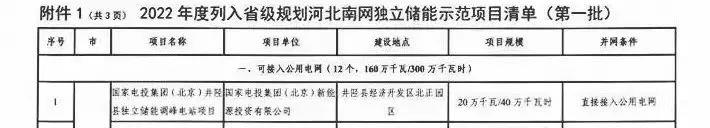 中國儲能網(wǎng)訊:近日,北京新能源公司取得石家莊市井陘縣電網(wǎng)側獨立儲能項目20萬千瓦/40萬千瓦時建設指標,并列入河北省規(guī)劃電網(wǎng)側獨立儲能示范項目(第一批)。