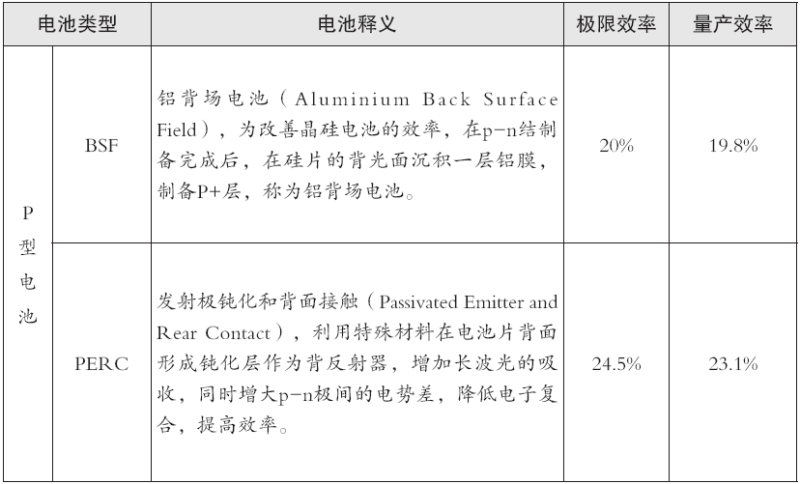 P型電池的制備工藝相對(duì)成熟,目前已實(shí)現(xiàn)量產(chǎn),包含BSF電池和RERC電池兩種類型。
