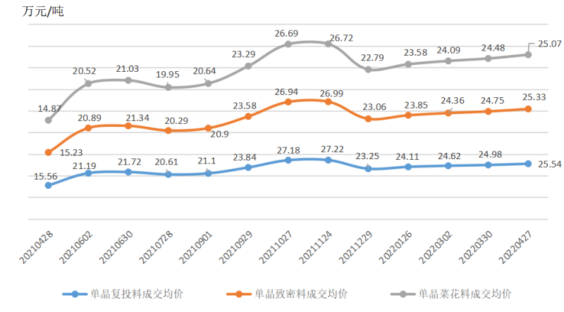 圖8 硅料市場(chǎng)成交均價(jià)走勢(shì)圖