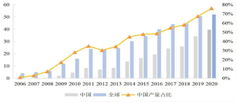 圖5 2006-2020年我國(guó)多晶硅產(chǎn)能全球占比