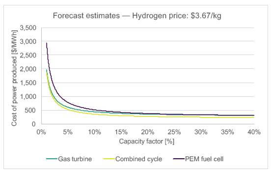 圖5.12 2020年氫燃料發(fā)電成本與容量因數(shù)的模型對比