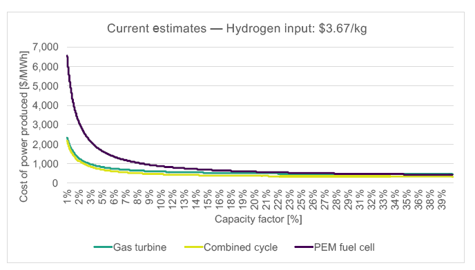 ?雖然儲存氫氣的低成本使得氫氣成為長期應(yīng)用的有吸引力的儲能介質(zhì),但相對于類似定位的火力發(fā)電資產(chǎn)而言,使用氫氣作為燃料發(fā)電非常昂貴。