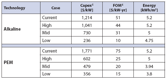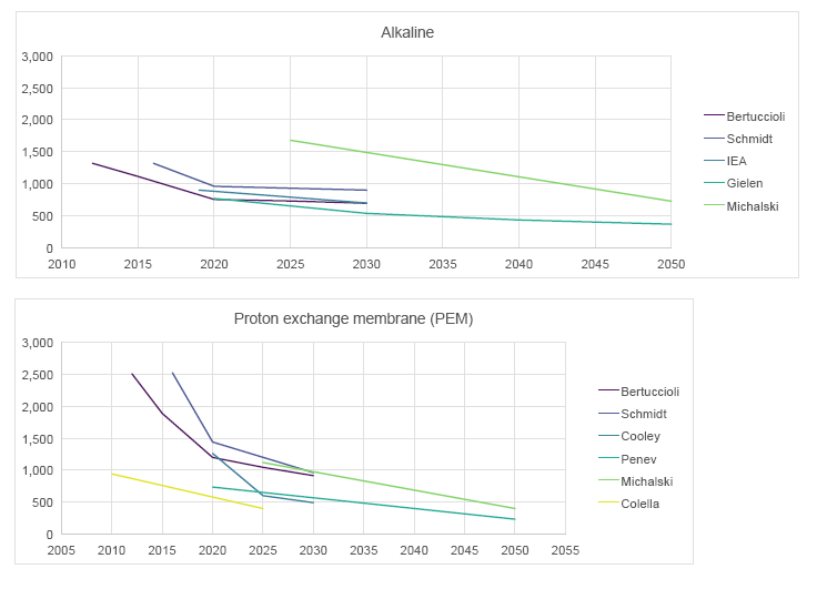 圖5.8 堿性電解槽和PEM電解槽的成本預(yù)測