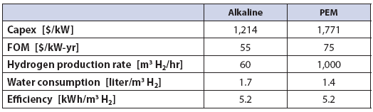 為了模擬從堿性電解槽和PEM電解槽生產(chǎn)氫氣的成本,研究團(tuán)隊(duì)考慮了一些變量:
