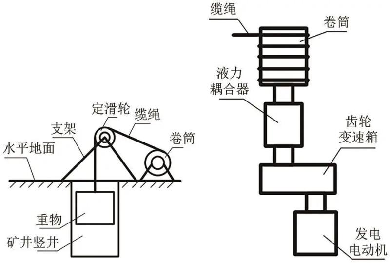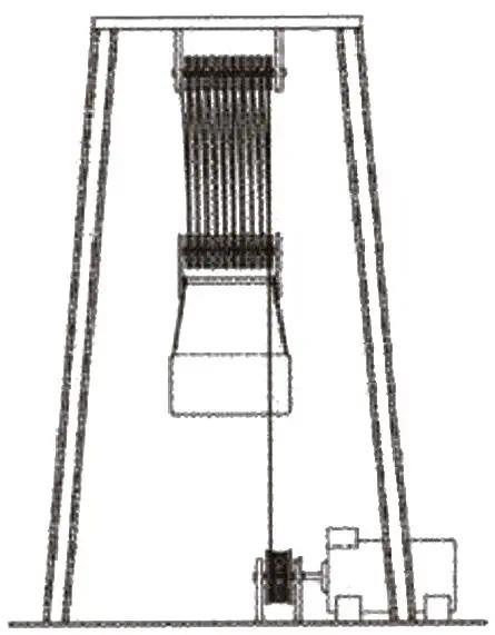 葛洲壩中科儲能技術(shù)公司2018年提出了利用廢棄礦井和纜繩提升重物的方案(圖13),解決了廢棄礦井長時間不使用的風(fēng)險和浪費問題,也降低了重力儲能系統(tǒng)的建設(shè)成本。但深井吊機的載重能力有限,重物和機組受井口尺寸限制,長繩索提升重物的形變、旋轉(zhuǎn)擺動問題仍待優(yōu)化,廢棄礦井資源有限,選址不夠靈活,還有瓦斯泄漏等安全隱患。