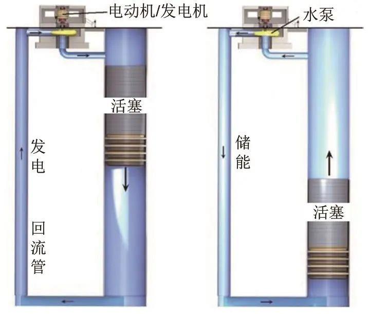 重力儲能是一種機械式的儲能,其儲能介質(zhì)主要分為水和固體物質(zhì),基于高度落差對儲能介質(zhì)進行升降來實現(xiàn)儲能系統(tǒng)的充放電過程。因為水的流動性強,水介質(zhì)型重力儲能系統(tǒng)可以借助密封良好的管道、豎井等結(jié)構(gòu),其選址的靈活性和儲能容量受地形和水源限制,在自然水源附近更易建成大規(guī)模的儲能系統(tǒng)。固體重物型重力儲能主要借助山體、地下豎井、人工構(gòu)筑物等結(jié)構(gòu),重物一般選擇密度較高的物質(zhì),如金屬、水泥、砂石等以實現(xiàn)較高的能量密度。