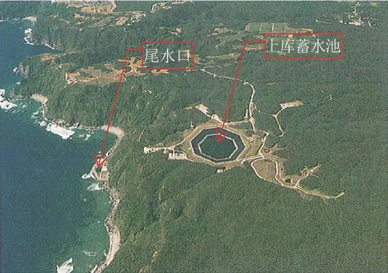 由于淡水抽水蓄能電站受自然環(huán)境、氣候條件、地形地貌等限制,選址日益困難,而我國沿海經(jīng)濟發(fā)達地區(qū)電力負荷日益增大,因此《水電發(fā)展“十三五”規(guī)劃》提出要推動建設(shè)海水抽水蓄能電站,解決新能源消納、間歇性等問題。常規(guī)海水抽儲是在海邊建設(shè)上水庫,將海洋作為下水庫,發(fā)電時海水通過水泵水輪機組從上庫排往海洋,將海水重力勢能轉(zhuǎn)化為電能,儲能時將海水抽至上水庫,以海水重力勢能形式存儲。排水型海水抽儲是在海灣修筑水壩,將壩內(nèi)水庫作為下庫,海洋作為上庫,利用水壩內(nèi)外海水落差進行儲能和發(fā)電。日本沖繩在1999年建設(shè)了世界首座海水抽水蓄能電站(圖1),可蓄水564000 m3,有效落差136 m,最大出力30 MW。愛爾蘭、智利等國也開始部署海水抽儲的相關(guān)研究工作。我國已經(jīng)完成了海水抽儲的資源普查工作,但還未有海水抽儲建設(shè)項目。海水抽水蓄能電站工程復(fù)雜,海水腐蝕、海洋生物附著會破壞設(shè)備,影響電站性能,沿海地區(qū)自然災(zāi)害頻繁,海水還會污染陸地土壤和地下水,因此需要嚴格的工程防護和評估檢查。