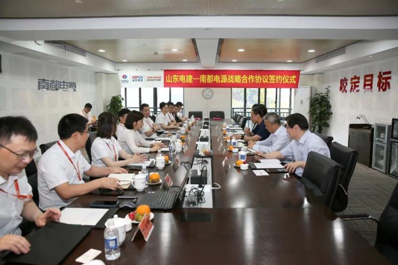 山東電建董事長張玉雷、副總經(jīng)理胥登峰、副總工程師王彥,南都電源董事長朱保義、總顧問王岳能等相關(guān)領(lǐng)導(dǎo)見證簽約。