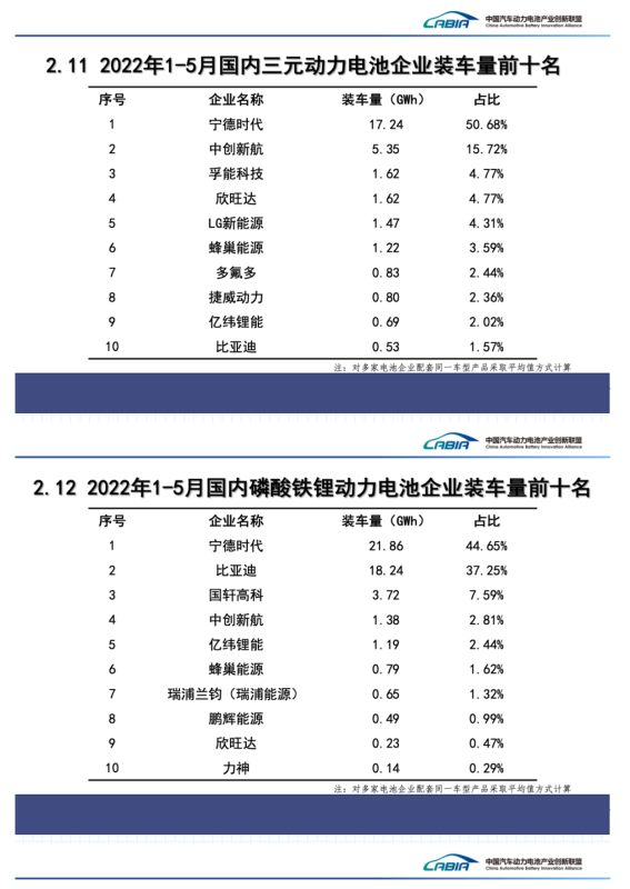 中國儲能網(wǎng)訊:2022年5月動力電池月度數(shù)據(jù)發(fā)布如下。