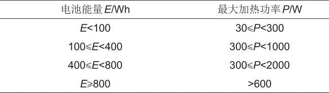 表2 GB/T 36276熱失控試驗加熱功率選擇