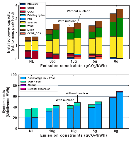 研究發(fā)現(xiàn),從能源供需平衡的角度來看,電力系統(tǒng)完全脫碳似乎是可行的,而使用可再生能源發(fā)電設(shè)施、天然氣發(fā)電設(shè)施和鋰離子電池儲(chǔ)能系統(tǒng),不會(huì)造成嚴(yán)重的可靠性問題或系統(tǒng)平均成本的大幅增加。