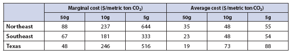 表6.7 各種排放政策限制下的碳減排邊際成本和平均成本