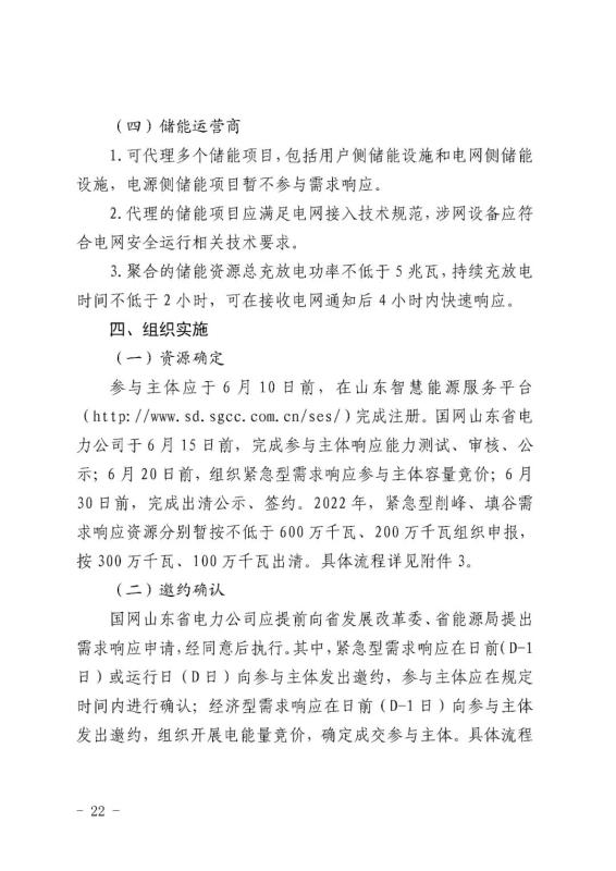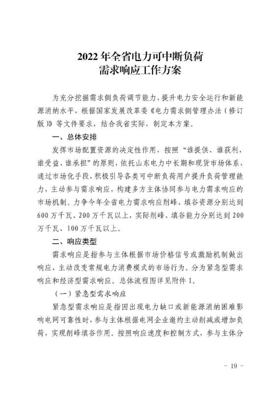 中國儲(chǔ)能網(wǎng)訊:6月7日,山東省能源局印發(fā)《2022年全省迎峰度夏有序用電方案》《2022年全省迎峰度夏有序用電用戶輪停方案》《2022年全省電力可中斷負(fù)荷需求響應(yīng)工作方案》。