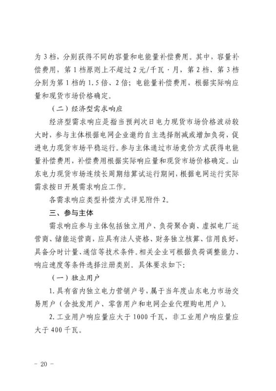 參與需求響應(yīng)可按3檔分別獲得不同的容量補(bǔ)償和能量補(bǔ)償。其中容量補(bǔ)償,分別為不超過2元/kW·月、3元/kW·月、4元/kW·月。