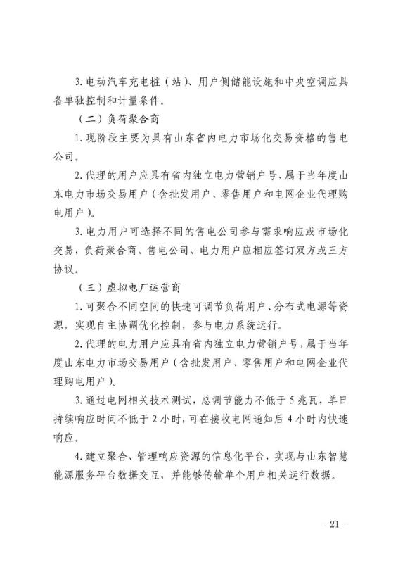 其中在電力需求響應(yīng)工作方案文件中明確提出,電動(dòng)汽車充電樁、用戶側(cè)儲(chǔ)能、虛擬電廠運(yùn)營商、以及儲(chǔ)能運(yùn)營商可作為市場主體參與并獲得收益。其中儲(chǔ)能運(yùn)營商可代理多個(gè)儲(chǔ)能項(xiàng)目,包括用戶側(cè)儲(chǔ)能和電網(wǎng)側(cè)儲(chǔ)能,電源側(cè)儲(chǔ)能項(xiàng)目暫不參與需求響應(yīng)。聚合的儲(chǔ)能資源總規(guī)模不低于5MW/10MWh。