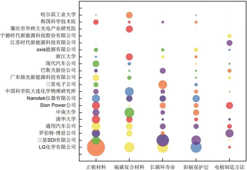 Fig. 7 Bubble chart of patent technology theme clustering of applicants in the field of lithium-sulfur batteries