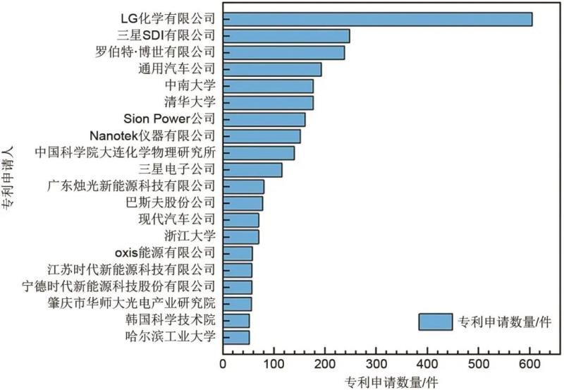 Fig. 6 Lithium-sulfur battery technology patents top 20 ranking of major technical applicants