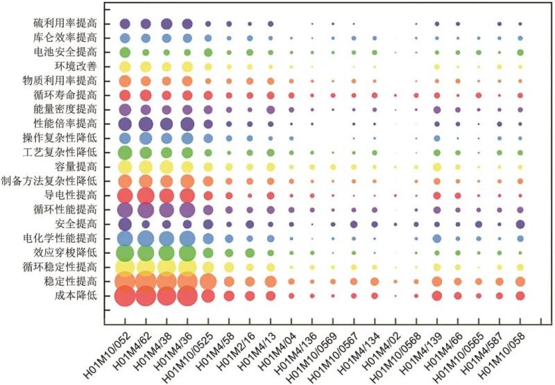圖3 鋰硫電池領(lǐng)域技術(shù)功效的分布情況