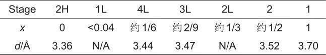 表4 不同鋰化程度的石墨層狀化合物:X是LixC6中的鋰化程度,d為參考文獻(xiàn)中的層間距