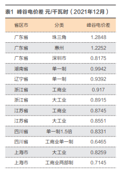 2021年7月,國(guó)家發(fā)展改革委發(fā)布《關(guān)于進(jìn)一步完善分時(shí)電價(jià)機(jī)制的通知》,全國(guó)各?。ㄊ校┌凑找?,均制定了“分時(shí)峰谷電價(jià)”。從表1中可知,各地一般工商業(yè)用電的峰谷電價(jià)差,少的每千瓦時(shí)0.6元,多的每千瓦時(shí)1.2元。由此可見,儲(chǔ)能蓄能設(shè)施具有較大的套利空間。