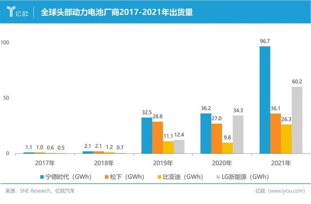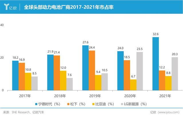 寧德時代與LG新能源齊頭并進,松下、比亞迪盡管出貨量也有大幅增長,但市場占有率僅徘徊在10%左右。