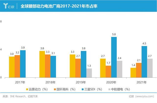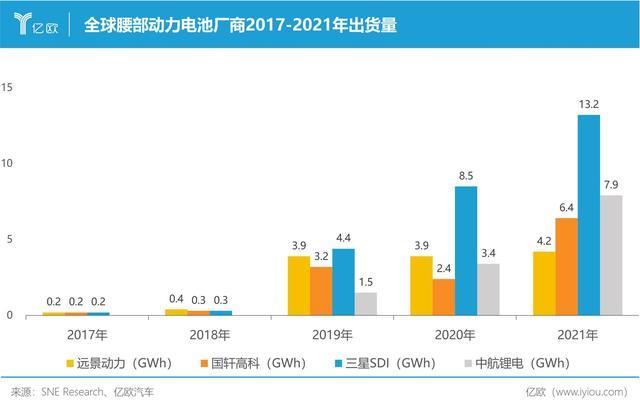 快速成長的企業(yè)中,中國動力電池企業(yè)占據(jù)大半江山,以遠景動力、國軒高科、中航鋰電等為代表的廠商,在五年內(nèi)實現(xiàn)了10倍以上漲幅。而三星SDI則在全球腰部企業(yè)中一路領(lǐng)跑,2021年出貨量突破10GWh。