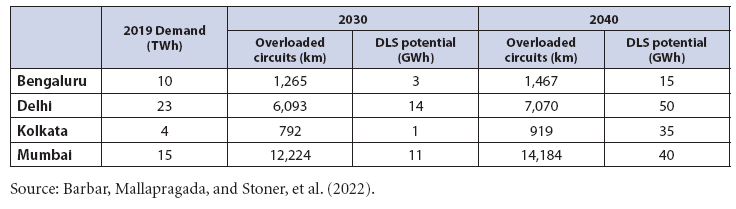 人們普遍關(guān)注如何將電池儲(chǔ)能系統(tǒng)作為非線纜替代方案 (NWA) 以避免或延遲電力線路升級(jí),并滿足配電網(wǎng)絡(luò)中快速增長的峰值需求。該用例與快速發(fā)展的新興市場和發(fā)展中經(jīng)濟(jì)體(EMDE)的超大城市(例如開羅、德里、雅加達(dá))的配電系統(tǒng)密切相關(guān)。而在這些國家,空調(diào)在夜晚電力需求峰值期間中所占的份額越來越大。研究團(tuán)隊(duì)通過研究印度四個(gè)特大城市(班加羅爾、德里、加爾各答和孟買),量化了分布式儲(chǔ)能系統(tǒng) (DLS) 作為新興市場和發(fā)展中經(jīng)濟(jì)體(EMDE)環(huán)境中城市配電的非線纜替代方案 (NWA)的作用。