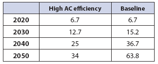 圖7.3 假設(shè)印度GDP穩(wěn)定增長,2020~2050年空調(diào)和電動(dòng)汽車對(duì)電力需求的增長情況