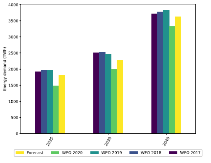 需求側(cè)分析分為兩個(gè)階段進(jìn)行:首先,使用回歸模型估計(jì)未來的最終用途的電力需求,該模型對(duì)2012~2019年期間的歷史區(qū)域電力需求進(jìn)行分析,并結(jié)合了2015年的電力需求。該模型使用天氣數(shù)據(jù)和印度各邦GDP的預(yù)測(cè)來估計(jì)季節(jié)性和長期增長趨勢(shì)。