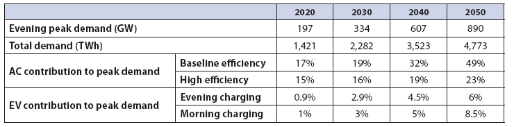 表7.2假設(shè)空調(diào)設(shè)備和電動(dòng)汽車需求增長對(duì)印度的需求預(yù)測(cè)