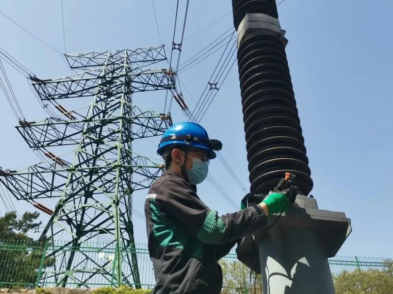檢修公司天津分部金屬檢測(cè)班班長(zhǎng)在泰安電站220千伏出線場(chǎng)對(duì)支柱瓷絕緣子進(jìn)行超聲檢測(cè)