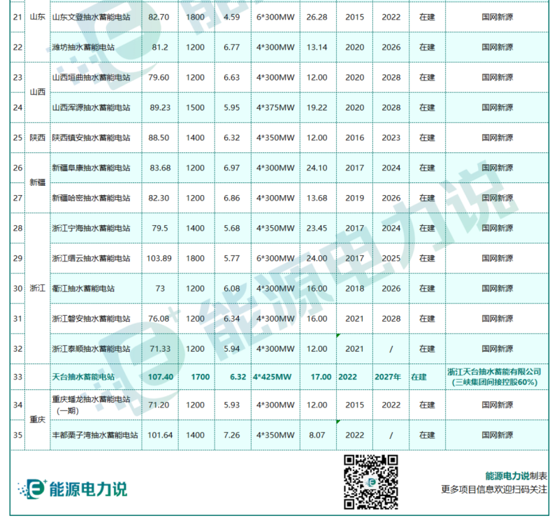 35個在建抽水蓄能電站名單如下 :