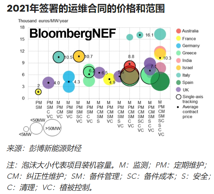 2021年歐洲光伏運(yùn)維全包服務(wù)合同的每年每MW價(jià)格