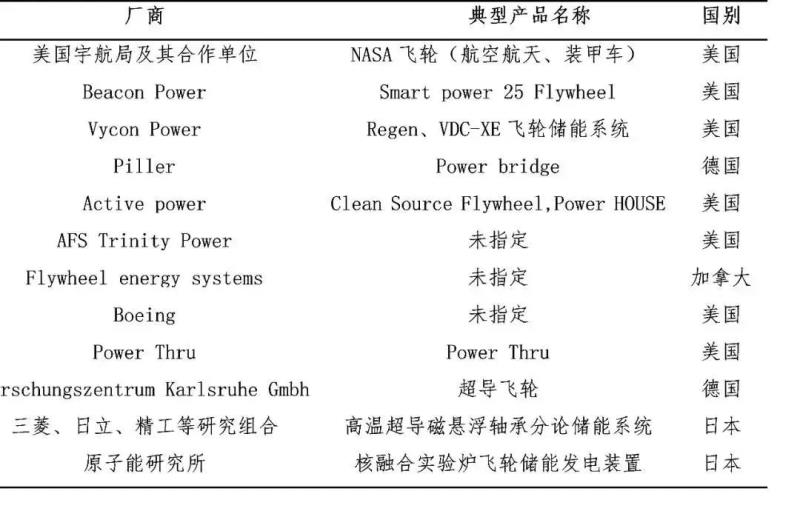 美國、西歐以及日本飛輪儲能系統(tǒng)知名開發(fā)商