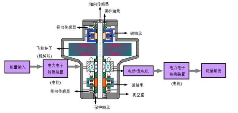 飛輪儲能系統(tǒng)是一種機電能量轉換的儲能裝置,突破了化學電池的局限,用物理方法實現(xiàn)儲能。通過電動/發(fā)電互逆式雙向電機,電能與高速運轉飛輪的機械動能之間的相互轉換與儲存,并通過調(diào)頻、整流、恒壓與不同類型的負載接口。飛輪儲能放電已經(jīng)被提出200多年,但是直到1970年代,綜合機電加工能力達標后才首次實用化。