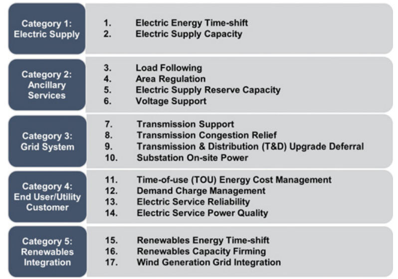 電力系統(tǒng)本質上管理起來很復雜。能源的即時生產、傳輸和分配需要主要在發(fā)電廠、輸配電網(wǎng)、負載和監(jiān)控中心的多層自主保護和控制系統(tǒng),以確保在這個大規(guī)模的即時交付質量的時代電力系統(tǒng)。儲能可以適當調整規(guī)模并進行管理,從而為現(xiàn)有系統(tǒng)增加戰(zhàn)略價值,如下所示: