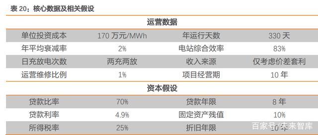 初始投資成本:以磷酸鐵鋰為例,從近兩年用戶側(cè)項目的招標(biāo)情況來看,EPC 單位投 資成本大多在 150-200 萬元/MWh 之間。我們假設(shè)工程單位投資成本為 170 萬元 /MWh。