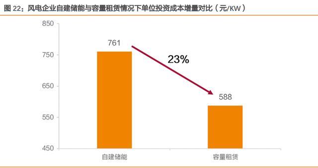 輔助服務(wù)市場放開,獨立儲能是更加貼合政策導(dǎo)向的獨立市場主體。2021 年底新發(fā)布的 “兩個細則”擴大了輔助服務(wù)的提供主體,豐富了輔助服務(wù)的服務(wù)品種,輔助服務(wù)市場向 儲能放開?!丁笆奈濉毙滦蛢δ馨l(fā)展實施方案》中明確提出,要推動儲能作為獨立主體參與各類電力市場,相比傳統(tǒng)依附于發(fā)電側(cè)的商業(yè)模式,獨立儲能電站更加貼合該政策導(dǎo)向。 同時,由于其“獨立性”,該模式下責(zé)任主體更為明確,有利于進一步提高儲能電站發(fā)展 建設(shè)的規(guī)范性與安全性。 同時滿足多方需求,“一站多用”共享模式助力收入渠道擴展。獨立儲能電站除了能夠作為傳統(tǒng)電網(wǎng)側(cè)儲能設(shè)施滿足其調(diào)峰調(diào)頻需求外,還可以滿足發(fā)電側(cè)的儲能需求。2021 年 8 月,國家能源局及發(fā)改委發(fā)布《關(guān)于鼓勵可再生能源發(fā)電企業(yè)自建或購買調(diào)峰能力增加并 網(wǎng)規(guī)模的通知》,確定新能源發(fā)電企業(yè)可通過租賃儲能容量,滿足新增新能源裝機調(diào)峰能力建設(shè)需求。以陸上風(fēng)電為例,根據(jù)測算,相比于自建儲能,發(fā)電企業(yè)選擇租賃儲能容量 時(15%配儲比例),總投資成本可降低 23%左右,差距明顯。