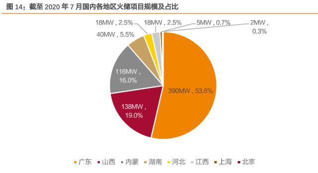 廣東等區(qū)域受補償政策影響,初期項目收益水平較為顯著,發(fā)展優(yōu)勢明顯。在性能需求疊 加補償政策影響下,火儲聯(lián)合調(diào)頻市場快速發(fā)展。根據(jù)儲能與電力市場統(tǒng)計,截至 2020 年 7 月,國內(nèi)火儲聯(lián)合調(diào)頻項目達 58 個(含投運、在建、中標(biāo)項目),總規(guī)模達 727MW, 且項目地集中于廣東、內(nèi)蒙、山西等地。
