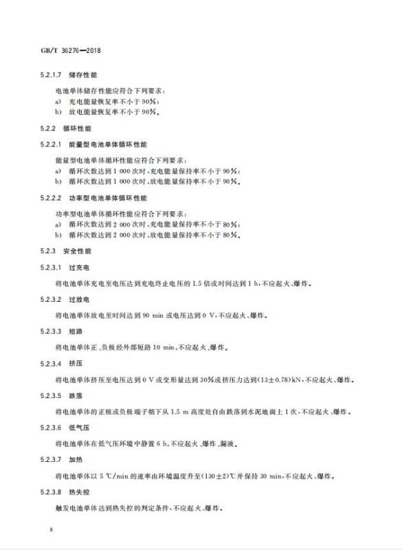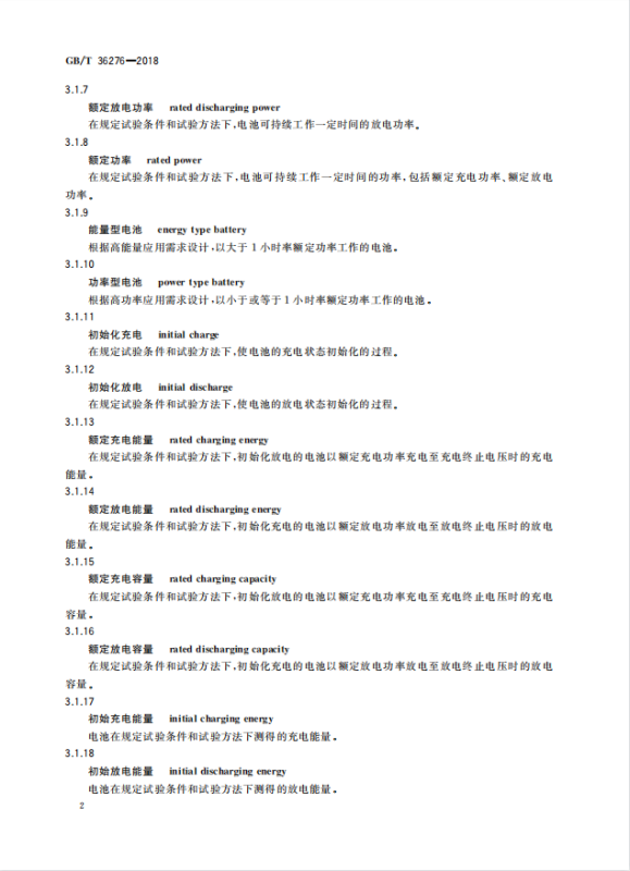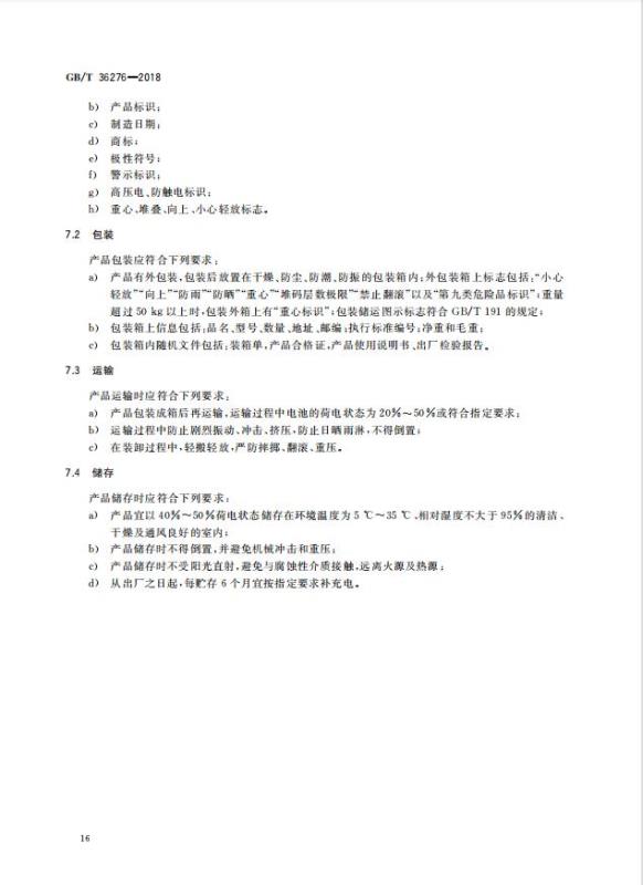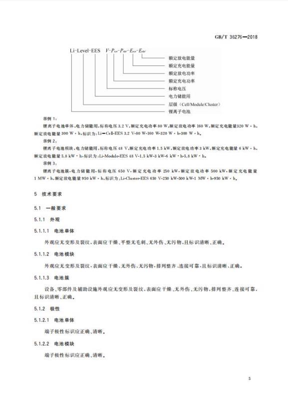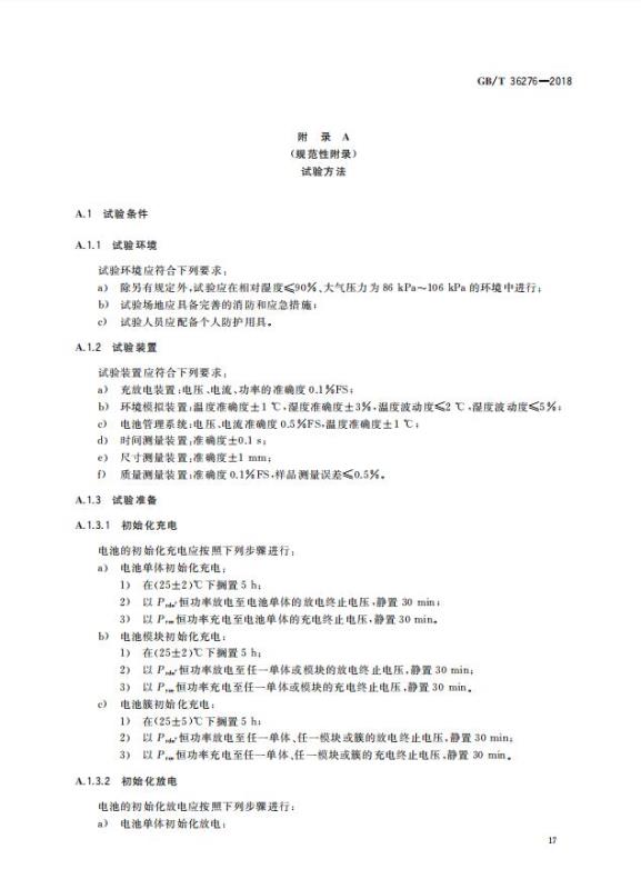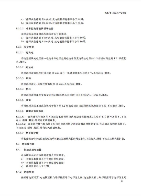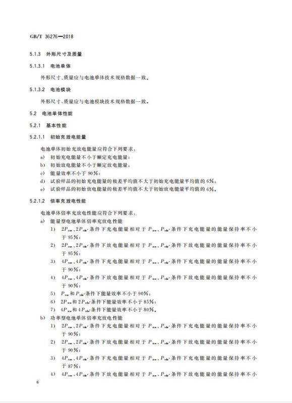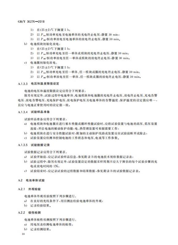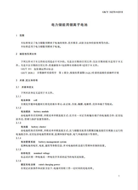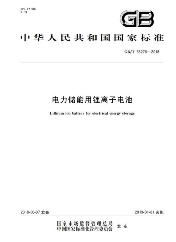 GB/T 36276-2018《電力儲能用鋰離子電池》