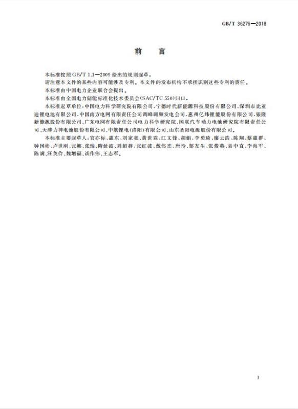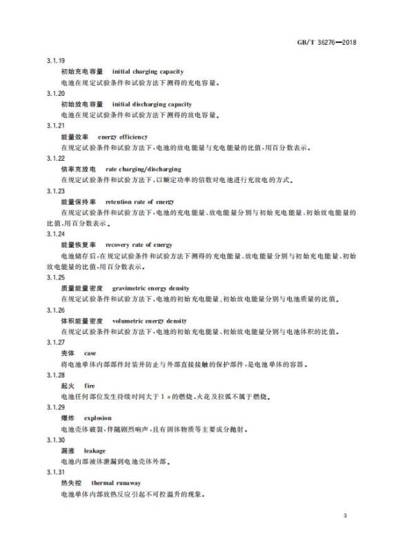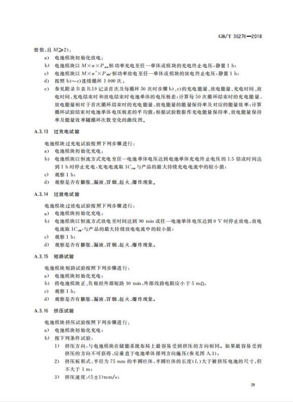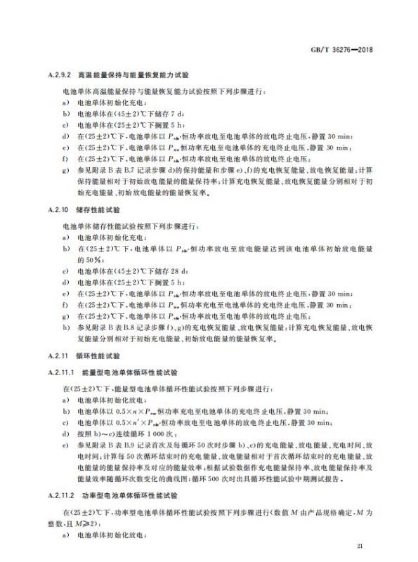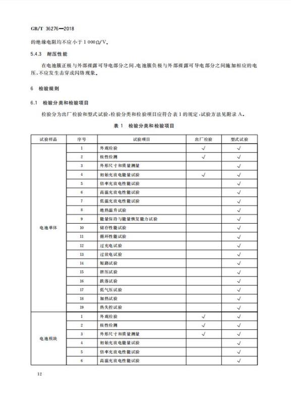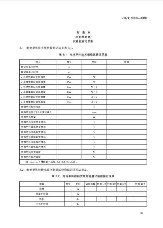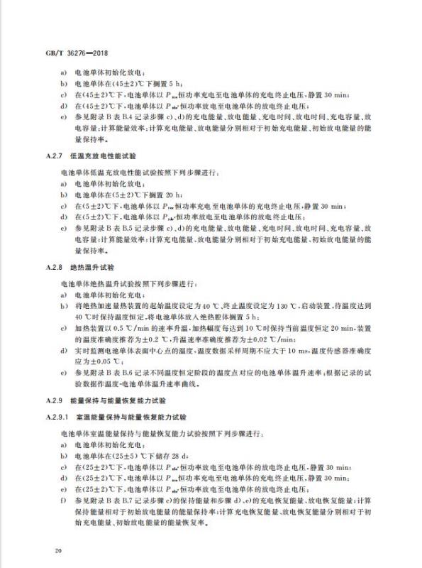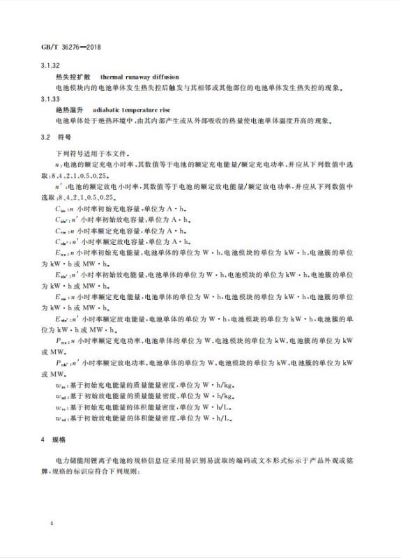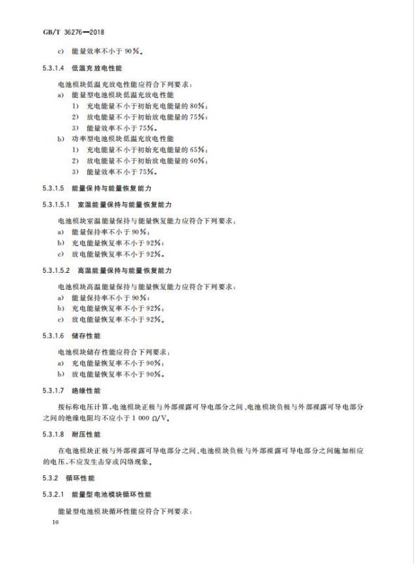 GB/T 36276-2018《電力儲能用鋰離子電池》