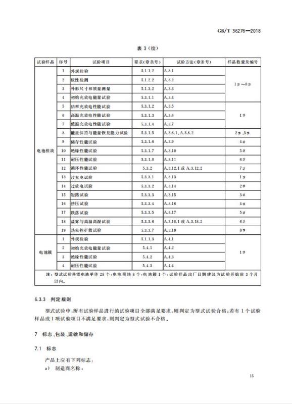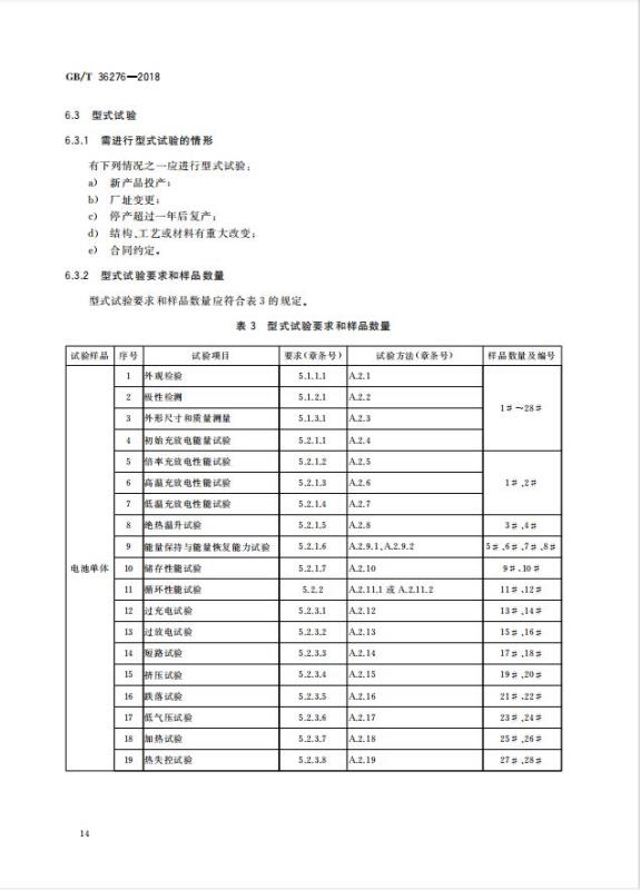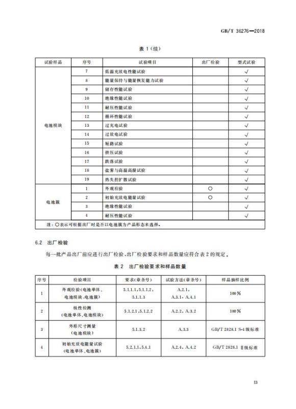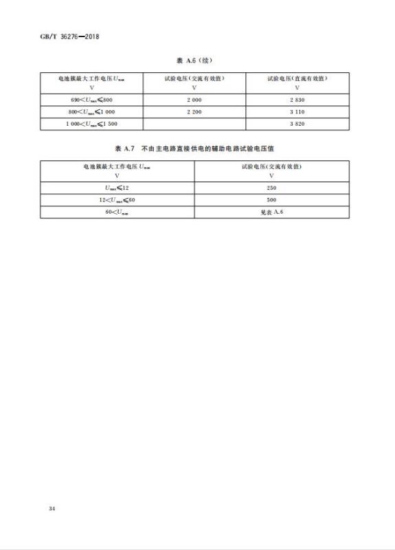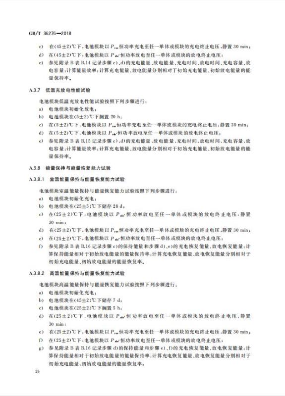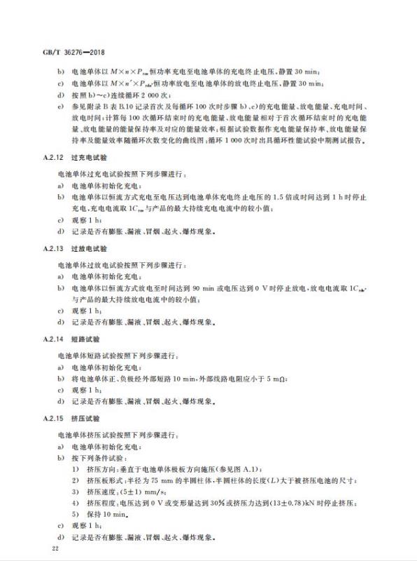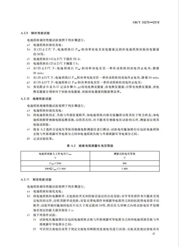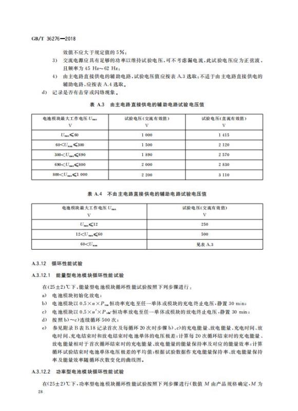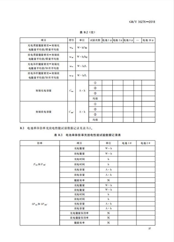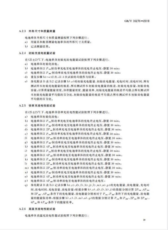 GB/T 36276-2018《電力儲能用鋰離子電池》