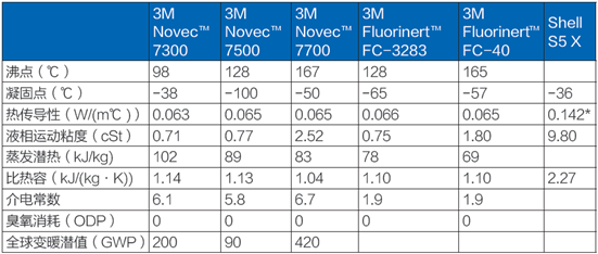 目前,3M公司是全球生產(chǎn)浸沒式電子氟化液的領(lǐng)先企業(yè),其生產(chǎn)的Fluorinert?電子氟化液與Novec?電子工程液均有不同型號可以用于雙相浸沒式液冷。兩者均有優(yōu)良的熱穩(wěn)定性和化學(xué)穩(wěn)定性、無味、不可燃、非油基、低毒性、無腐蝕性,可為數(shù)據(jù)中心提供可信賴且可持續(xù)的解決方案。