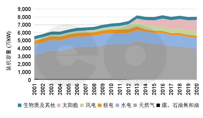 圖6 加州電源裝機(jī)規(guī)模變化(不含外購(gòu)電)