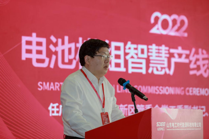 趙永志在歡迎辭中對(duì)一直以來幫助和支持企業(yè)發(fā)展的各級(jí)領(lǐng)導(dǎo)、合作伙伴以及社會(huì)各界同仁表示感謝。他表示,在“加快生態(tài)文明體制改革、建設(shè)美麗新中國”的發(fā)展要求下,儲(chǔ)能技術(shù)是支撐能源綠色轉(zhuǎn)型、保障能源安全、促進(jìn)能源高質(zhì)量發(fā)展的重要手段,電池模組智慧產(chǎn)線的正式投運(yùn),標(biāo)志著山東電工電氣踐行國家“雙碳”戰(zhàn)略邁上了新臺(tái)階,將全面開啟智慧化儲(chǔ)能新時(shí)代。