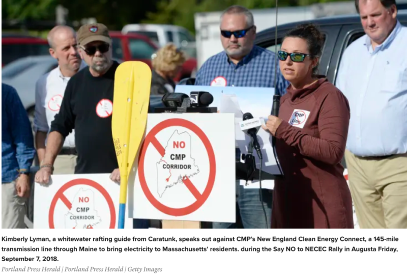 反對建設(shè)輸電線路的公民組織成一個名為“對NECEC說不”的團(tuán)體,這是該項目名稱New England Clean Energy Connect的首字母縮寫。該團(tuán)體的負(fù)責(zé)人是46歲的桑迪·霍華德,是基恩州立學(xué)院的音樂教授。霍華德表示希望保護(hù)其環(huán)境和生活方式。她說,修建輸電線“將對緬因州的自然資源、風(fēng)景特征、對緬因州四季娛樂旅游業(yè)的經(jīng)濟(jì)影響產(chǎn)生巨大影響?!?