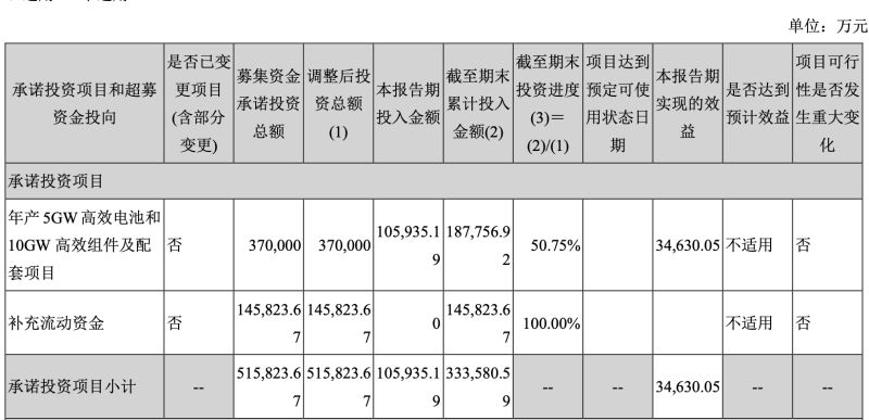 截至2021年底,晶澳科技募投資金使用情況 圖片來(lái)源:晶澳科技2021年年報(bào)
