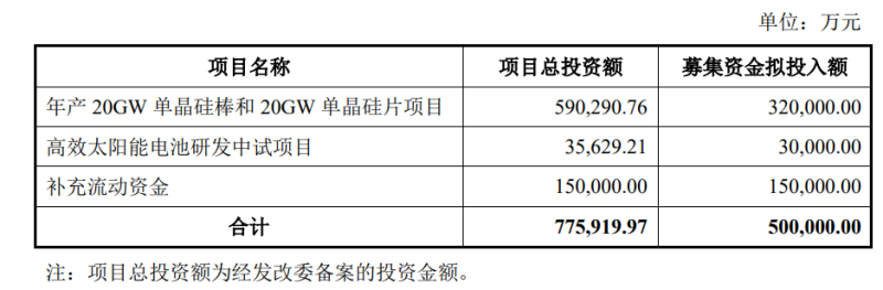此前在5月11日,晶澳科技還發(fā)布公告稱,公司定增募資50億元,新增發(fā)行股份于5月16日上市。其中35億元將投入“年產(chǎn)20GW單晶硅棒和20GW單晶硅片項(xiàng)目”、“高效太陽(yáng)能電池研發(fā)中試項(xiàng)目”的建設(shè),剩下15億元將用于補(bǔ)充流動(dòng)資金。