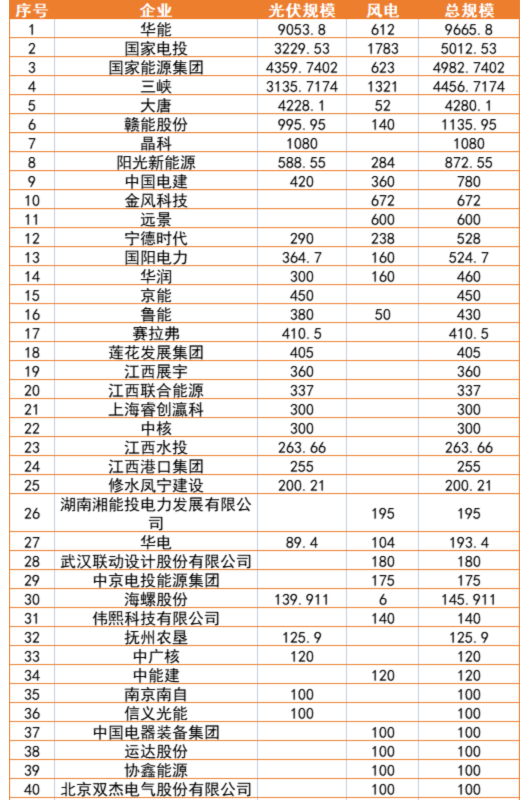 根據(jù)納入規(guī)劃的項目名單來看,華能、國家電投、國家能源集團的規(guī)模進入TOP3,幾乎均達到5GW以上,其次是三峽、大唐、贛能股份,民營企業(yè)則由晶科、陽光新能源領(lǐng)銜,GW級規(guī)模以上企業(yè)為7個。